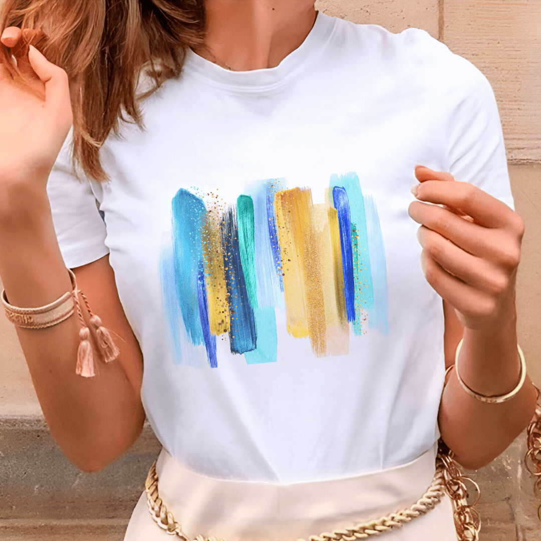Tricou Casual Damă Engros Alb | Blue Glitters | Bumbac Organic 100%, 160 g/m²