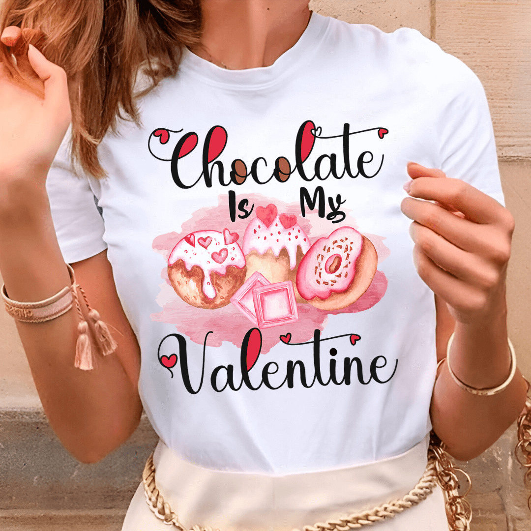 Tricou Casual Damă Engros Alb | Chocolate Is My Valentine | Bumbac Organic 100%, 160 g/m²