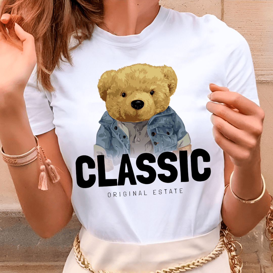 Tricou Casual Damă Engros Alb | Cute Family | Bumbac Organic 100%, 160 g/m²