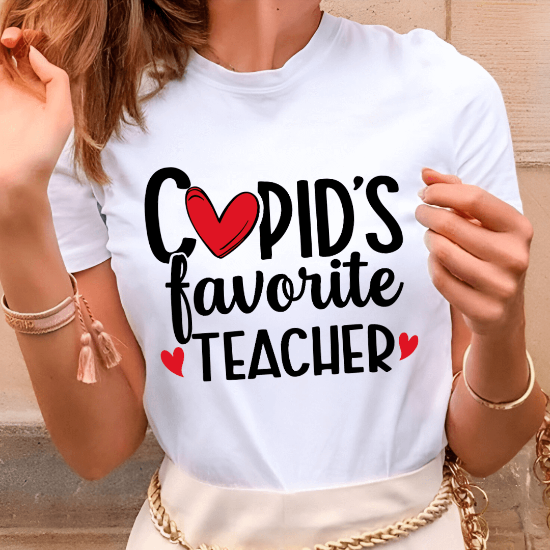 Tricou Casual Damă Engros Alb | Cupids Fav Teacher | Bumbac Organic 100%, 160 g/m²