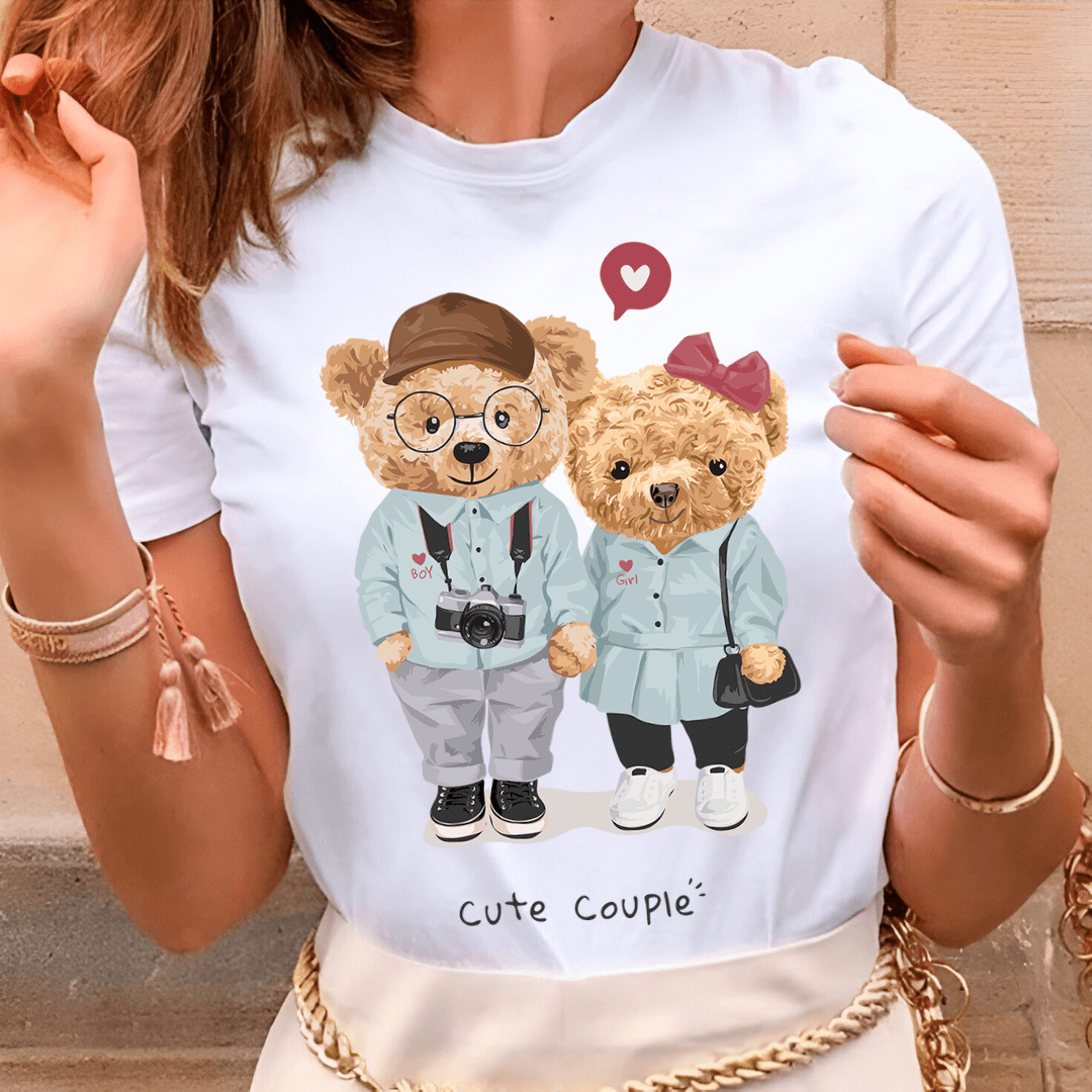 Tricou Casual Damă Engros Alb | Cute Couple | Bumbac Organic 100%, 160 g/m²