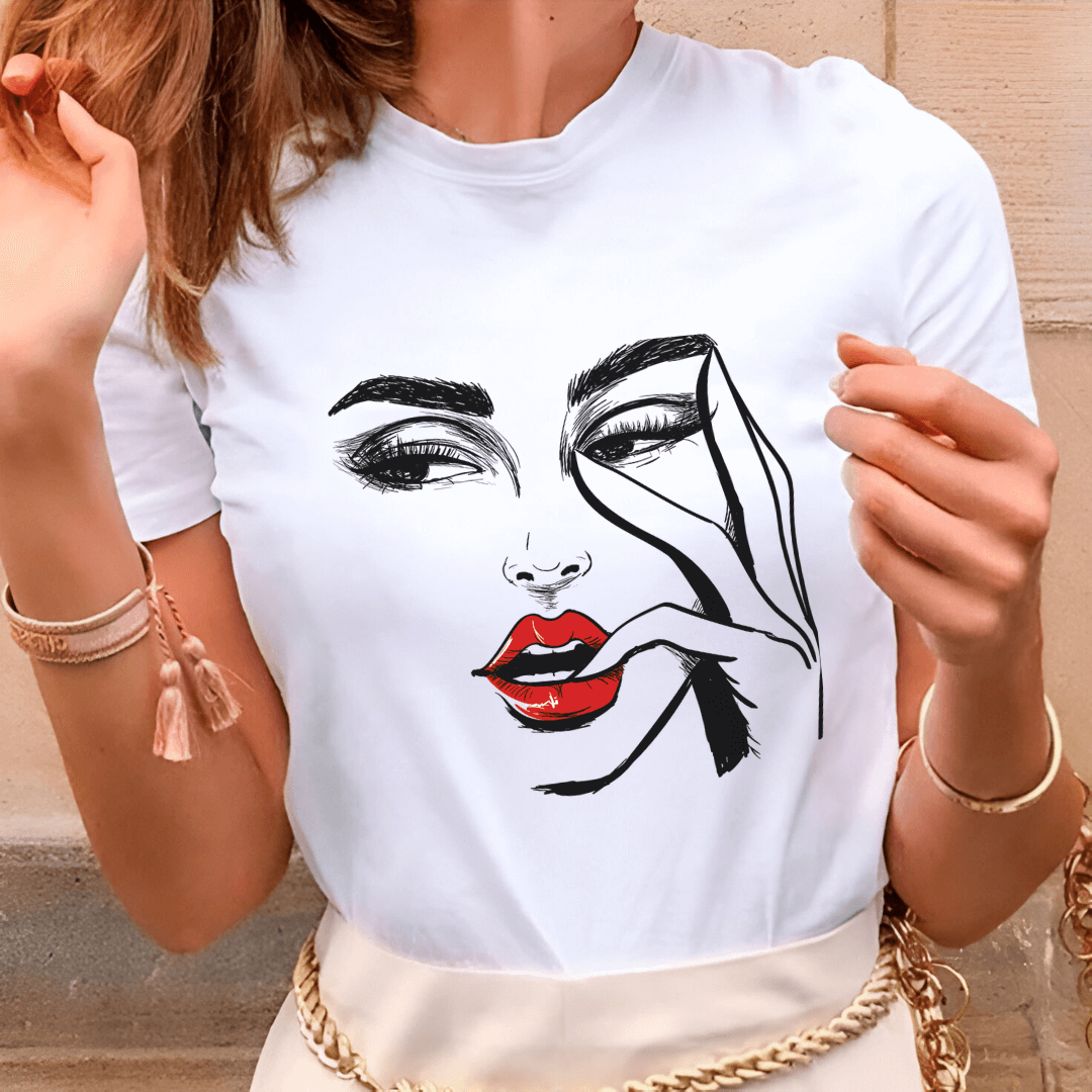 Tricou Casual Damă Engros Alb | Cute Face | Bumbac Organic 100%, 160 g/m²