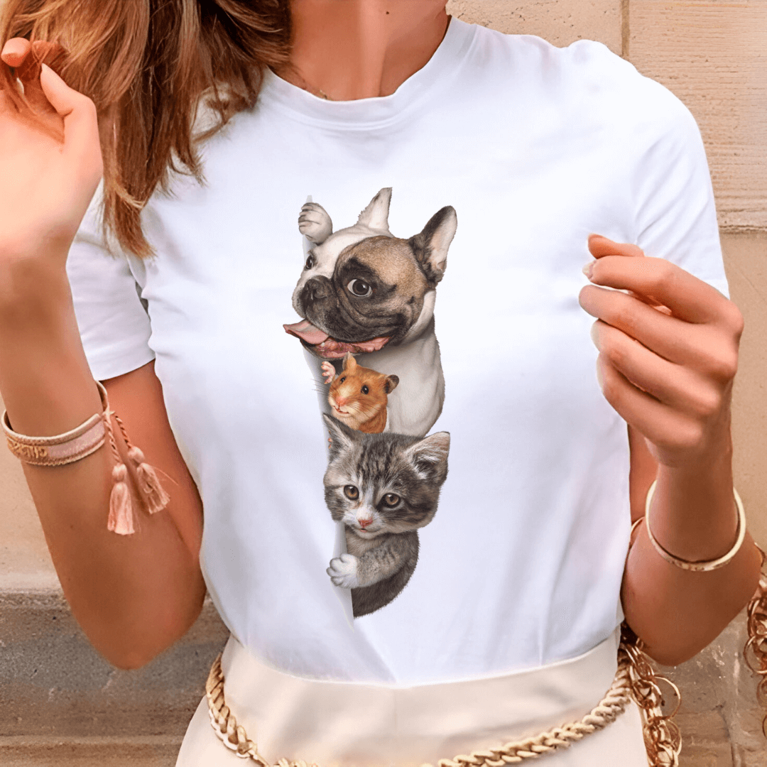 Tricou Casual Damă Engros Alb | Cute Cat | Bumbac Organic 100%, 160 g/m²