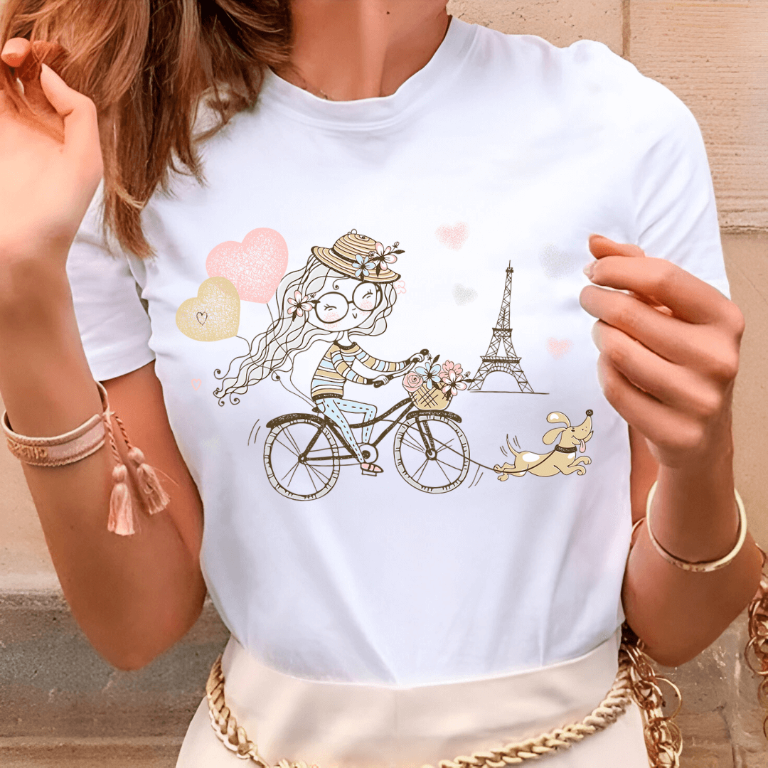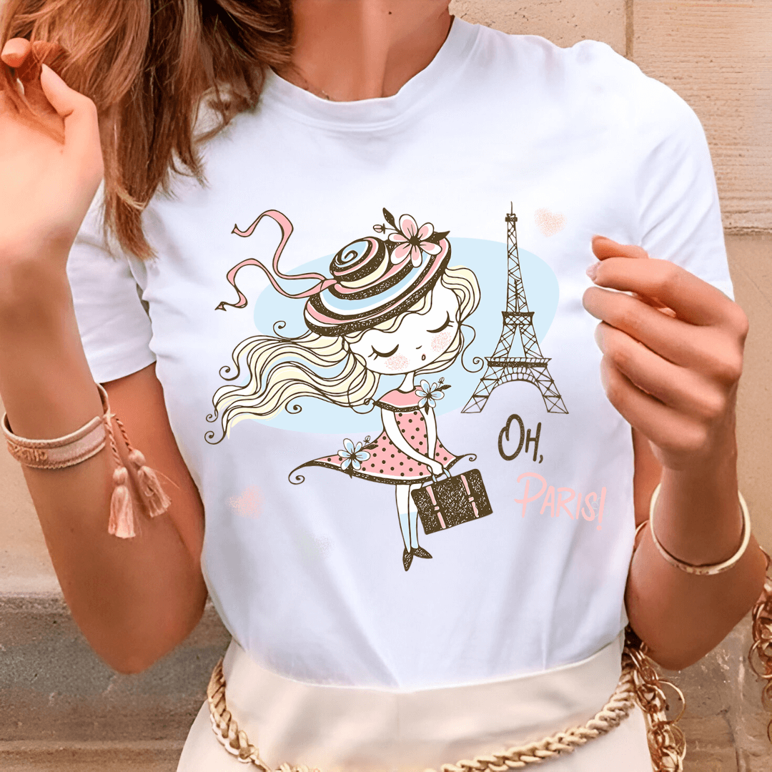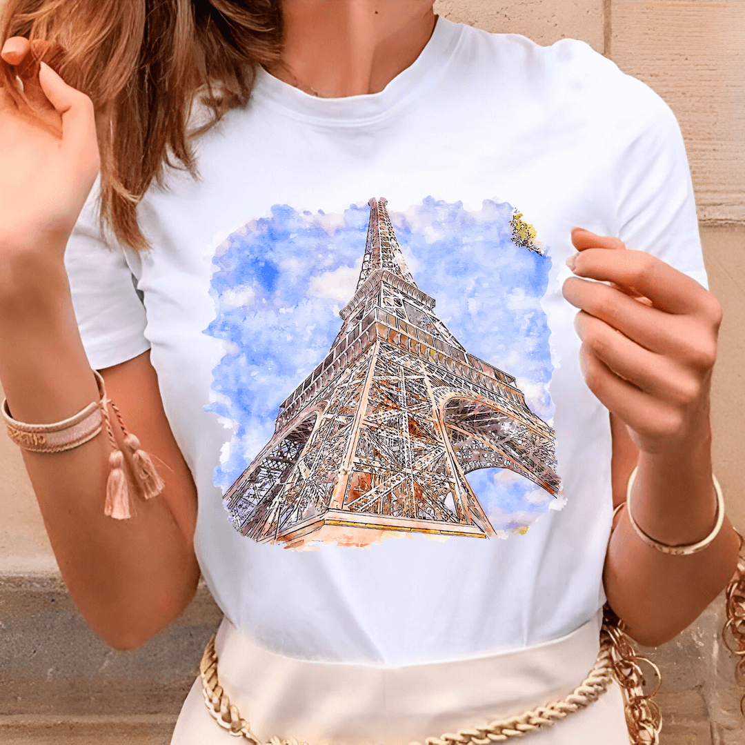 Tricou Casual Damă Engros Alb | Eiffel Tower | Bumbac Organic 100%, 160 g/m²