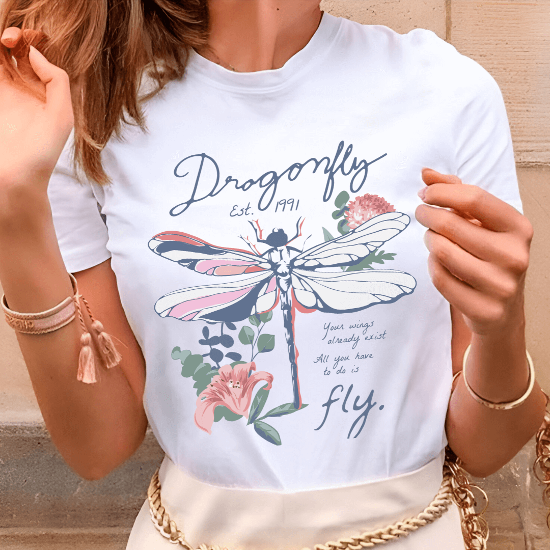 Tricou Casual Damă Engros Alb | Dragonfly | Bumbac Organic 100%, 160 g/m²