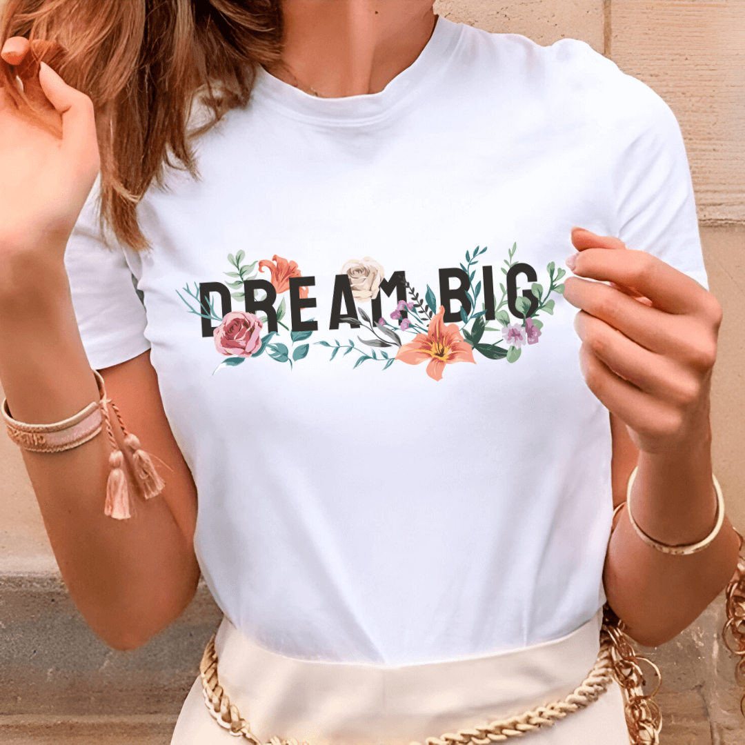 Tricou Casual Damă Engros Alb | Dream Big | Bumbac Organic 100%, 160 g/m²