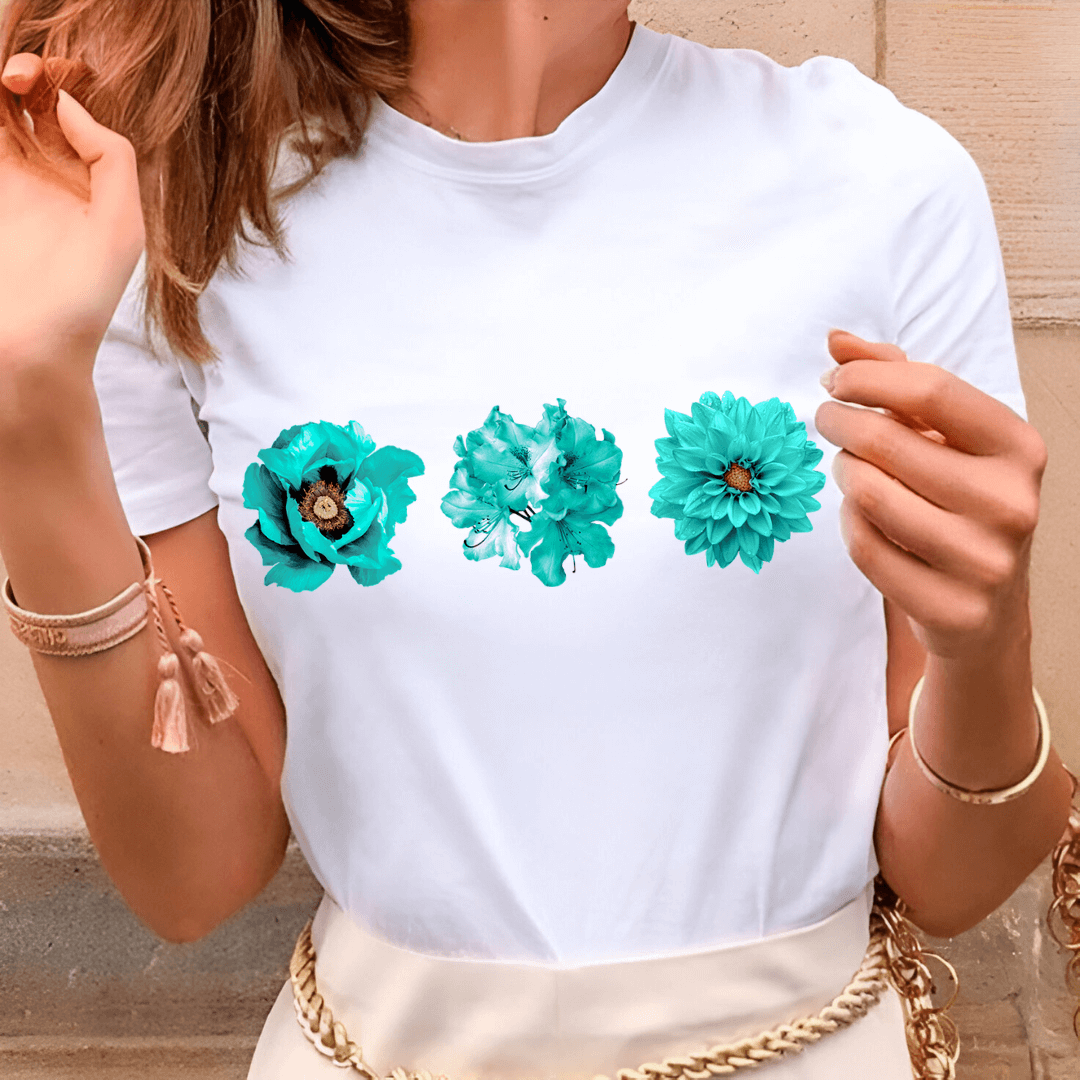 Tricou Casual Damă Engros Alb | Emerald Green Flowers | Bumbac Organic 100%, 160 g/m²