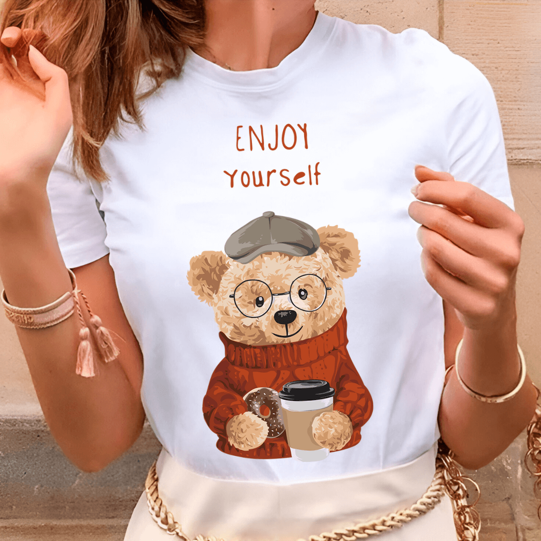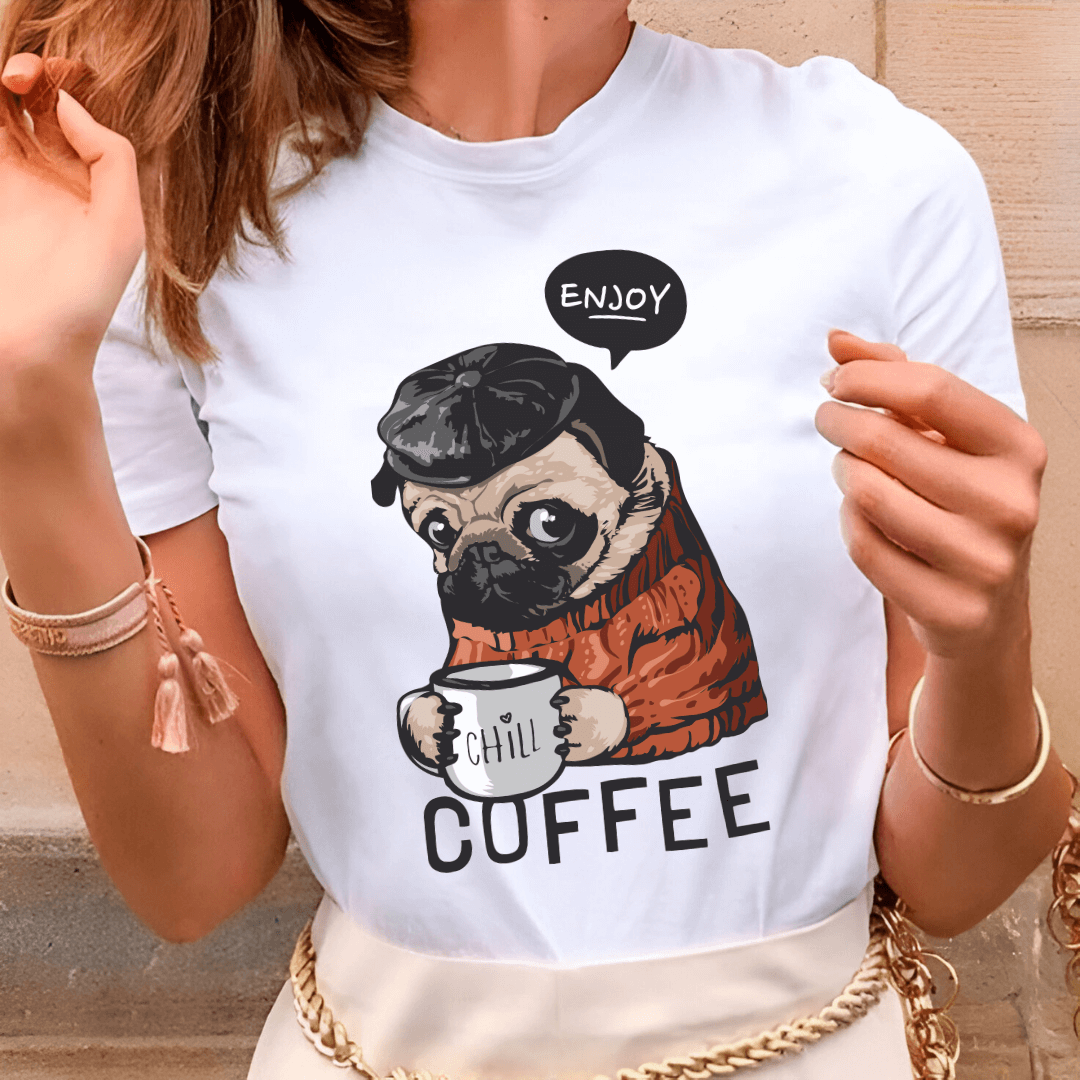 Tricou Casual Damă Engros Alb | Enjoy Coffee | Bumbac Organic 100%, 160 g/m²