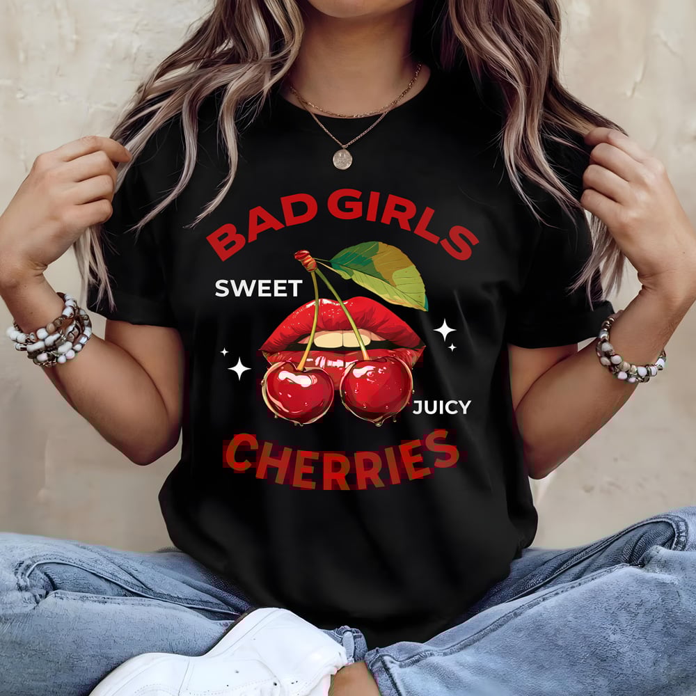 Tricou Casual Damă Engros Negru | Bad Girls Cherry | Bumbac Organic 100%, 160 g/m²