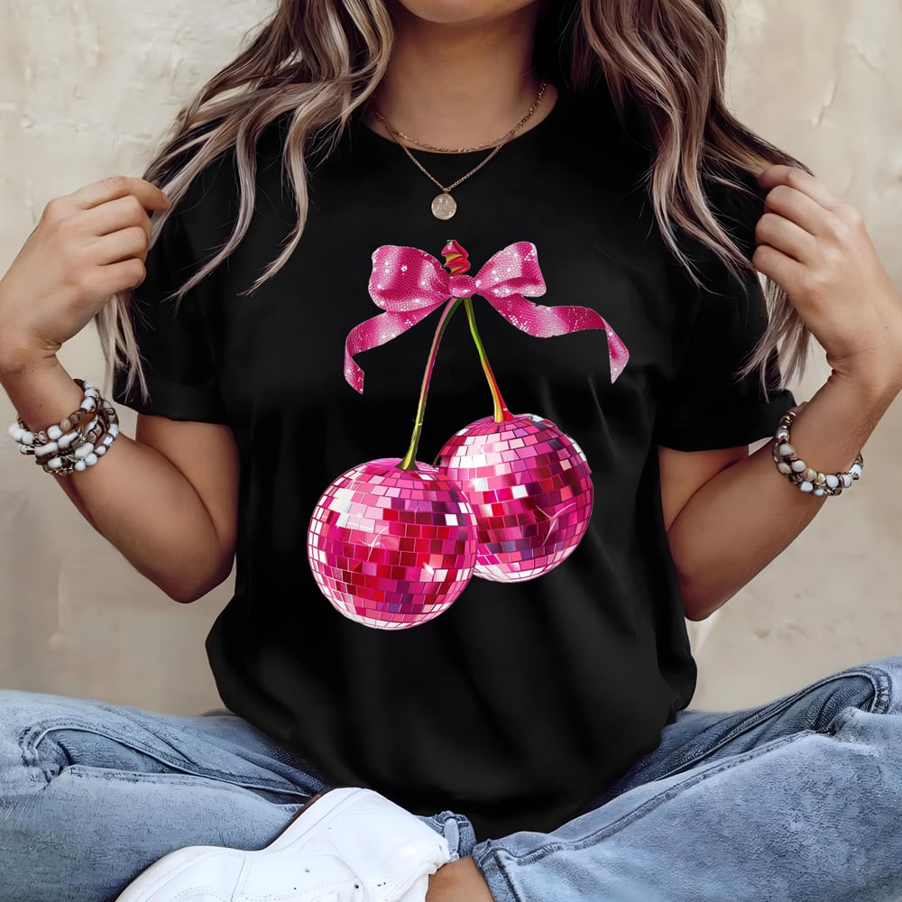 Tricou Casual Damă Engros Negru | Disco Cherry | Bumbac Organic 100%, 160 g/m²