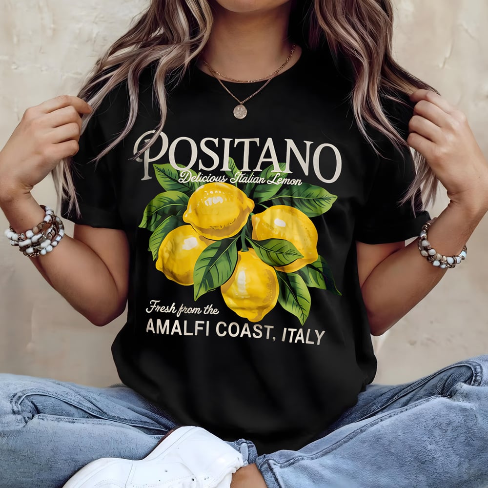 Tricou Casual Damă Engros Negru | Positano Lemon | Bumbac Organic 100%, 160 g/m²