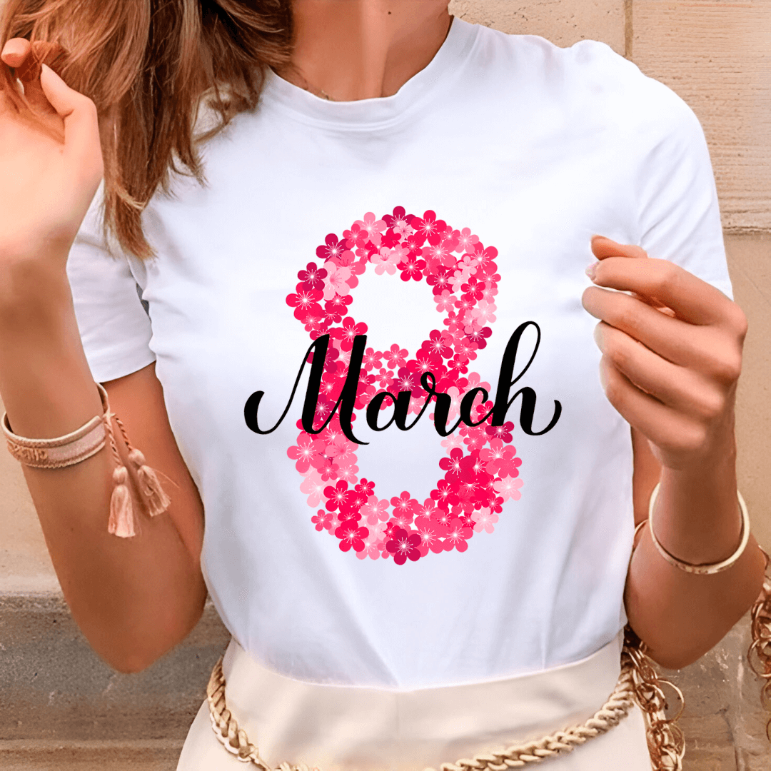 Tricou Casual Damă Engros Alb | 8 March | Bumbac Organic 100%, 160 g/m²