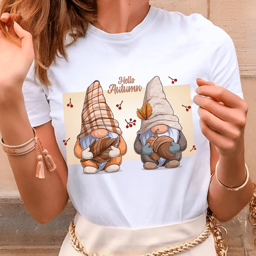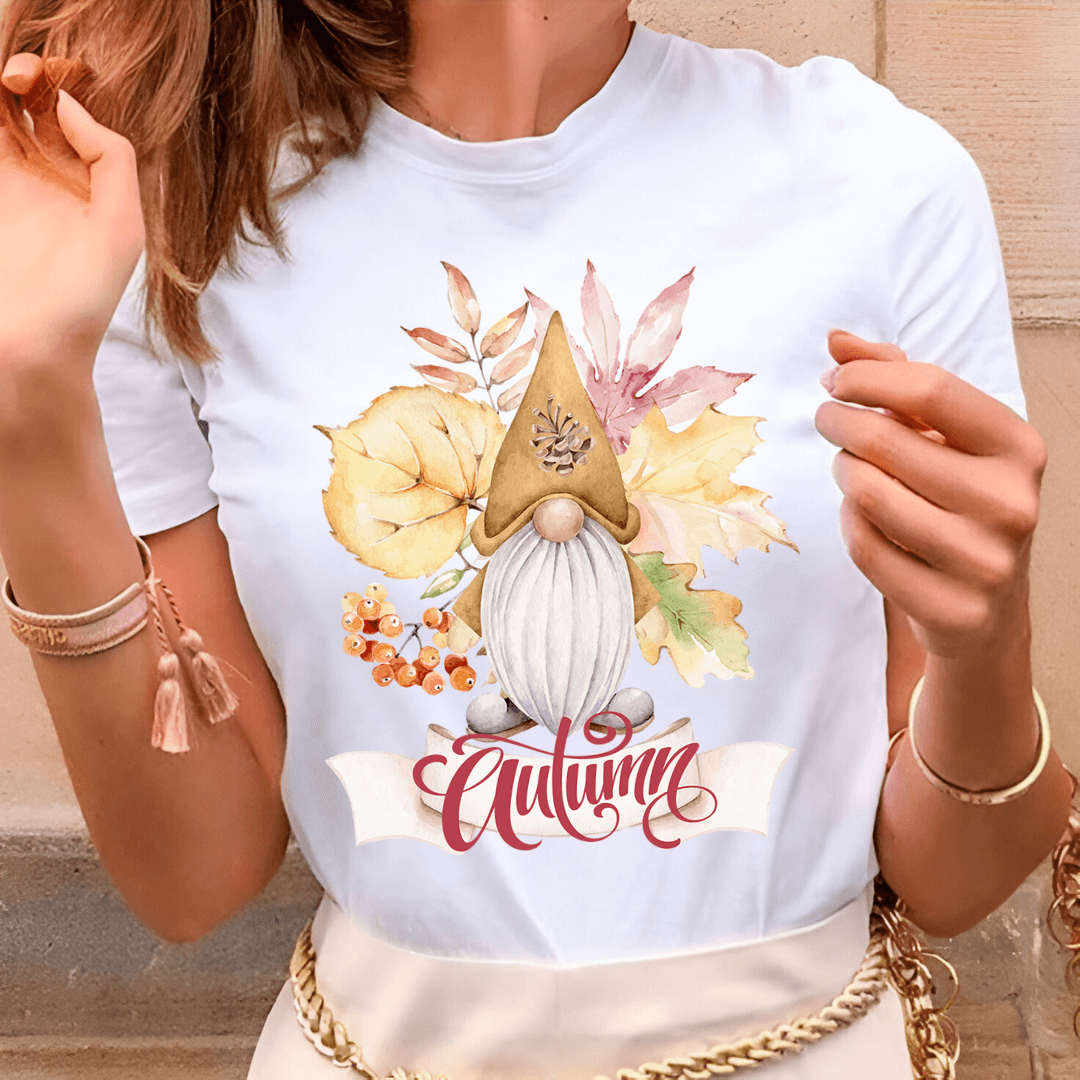 Tricou Casual Damă Engros Alb | Fall Gnome | Bumbac Organic 100%, 160 g/m²