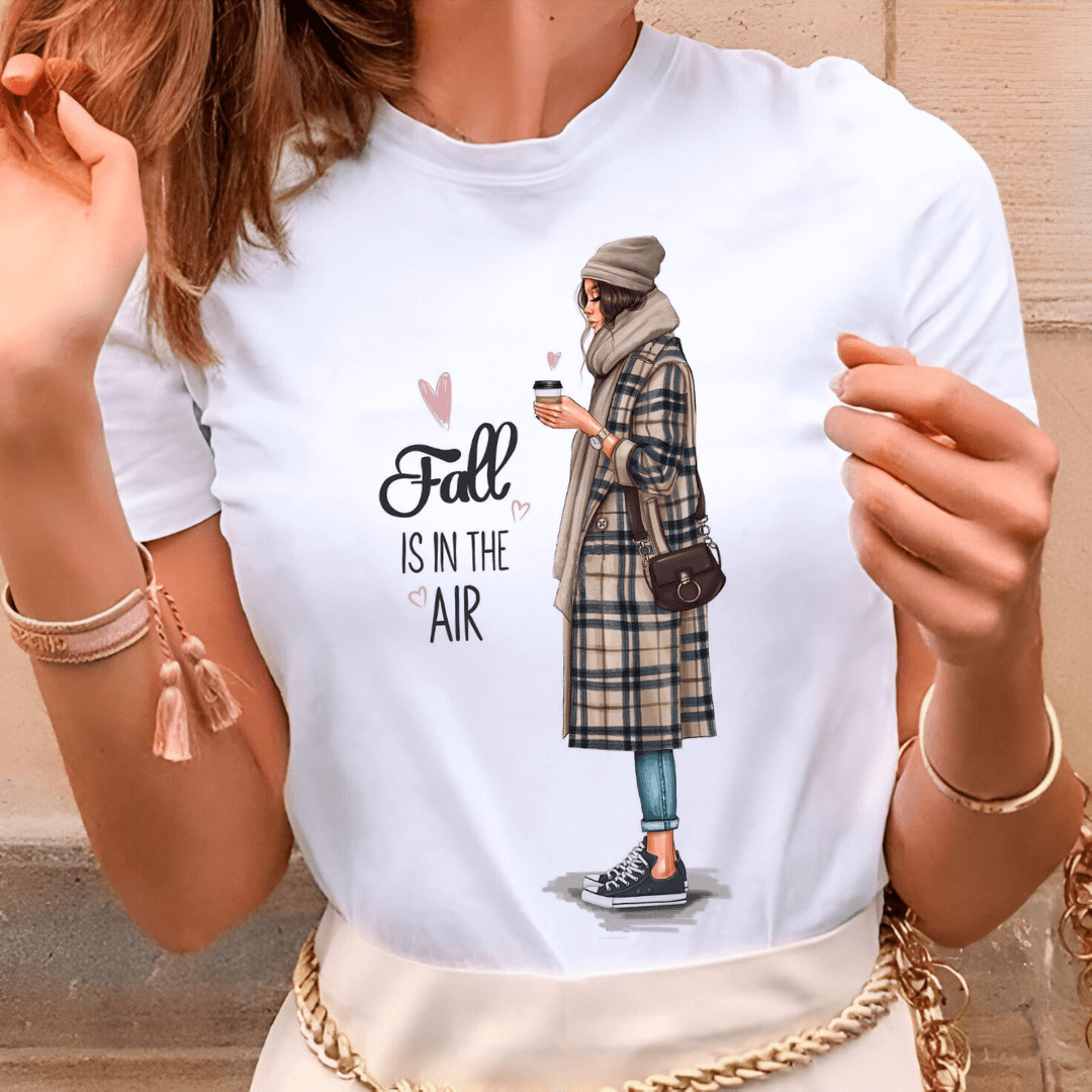 Tricou Casual Damă Engros Alb | Fall Is In The Air | Bumbac Organic 100%, 160 g/m²