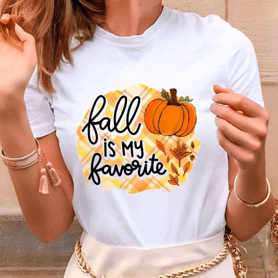 Tricou Casual Damă Engros Alb | Fall Is My Fav | Bumbac Organic 100%, 160 g/m²