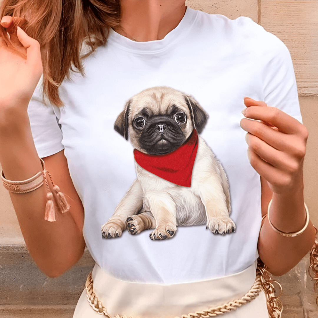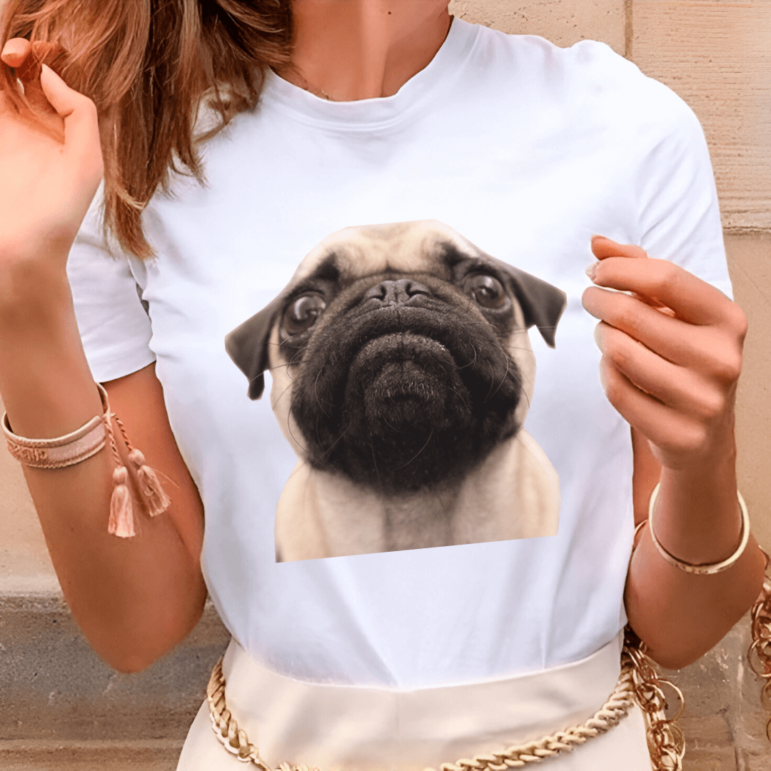 Tricou Casual Damă Engros Alb | Gangsta Pug | Bumbac Organic 100%, 160 g/m²