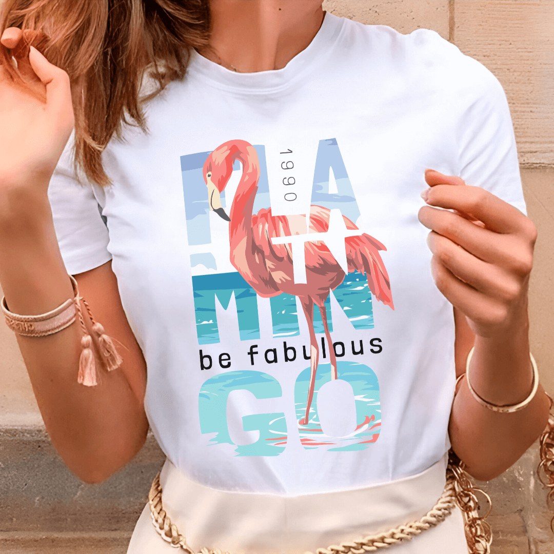 Tricou Casual Damă Engros Alb | Flamingo Be Fabulous | Bumbac Organic 100%, 160 g/m²