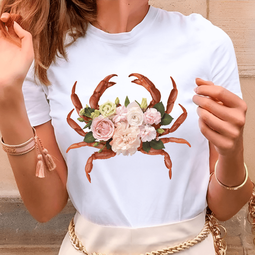 Tricou Casual Damă Engros Alb | Floral Crab | Bumbac Organic 100%, 160 g/m²