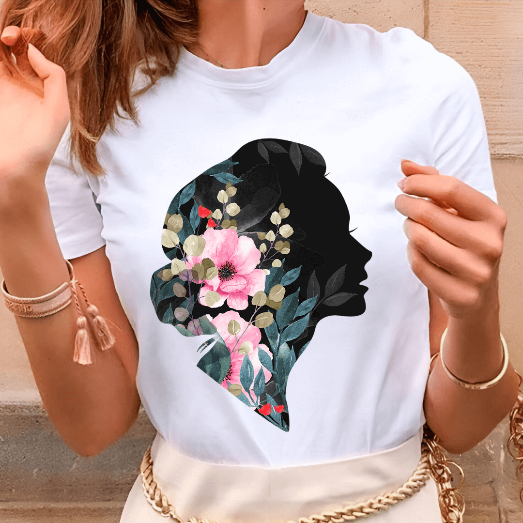 Tricou Casual Damă Engros Alb | Floral Girl | Bumbac Organic 100%, 160 g/m²