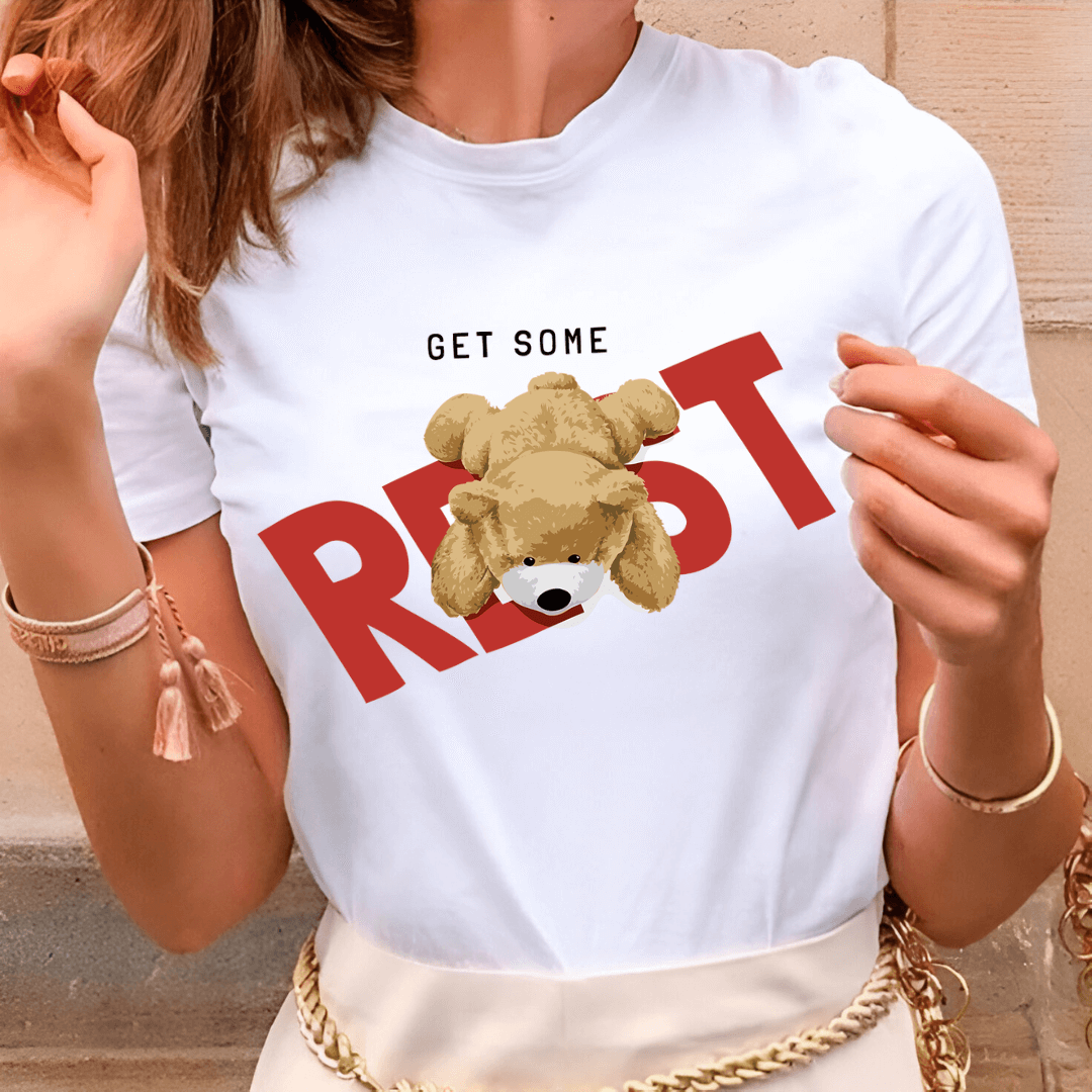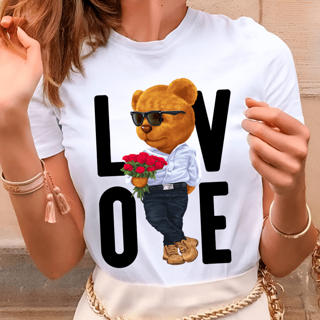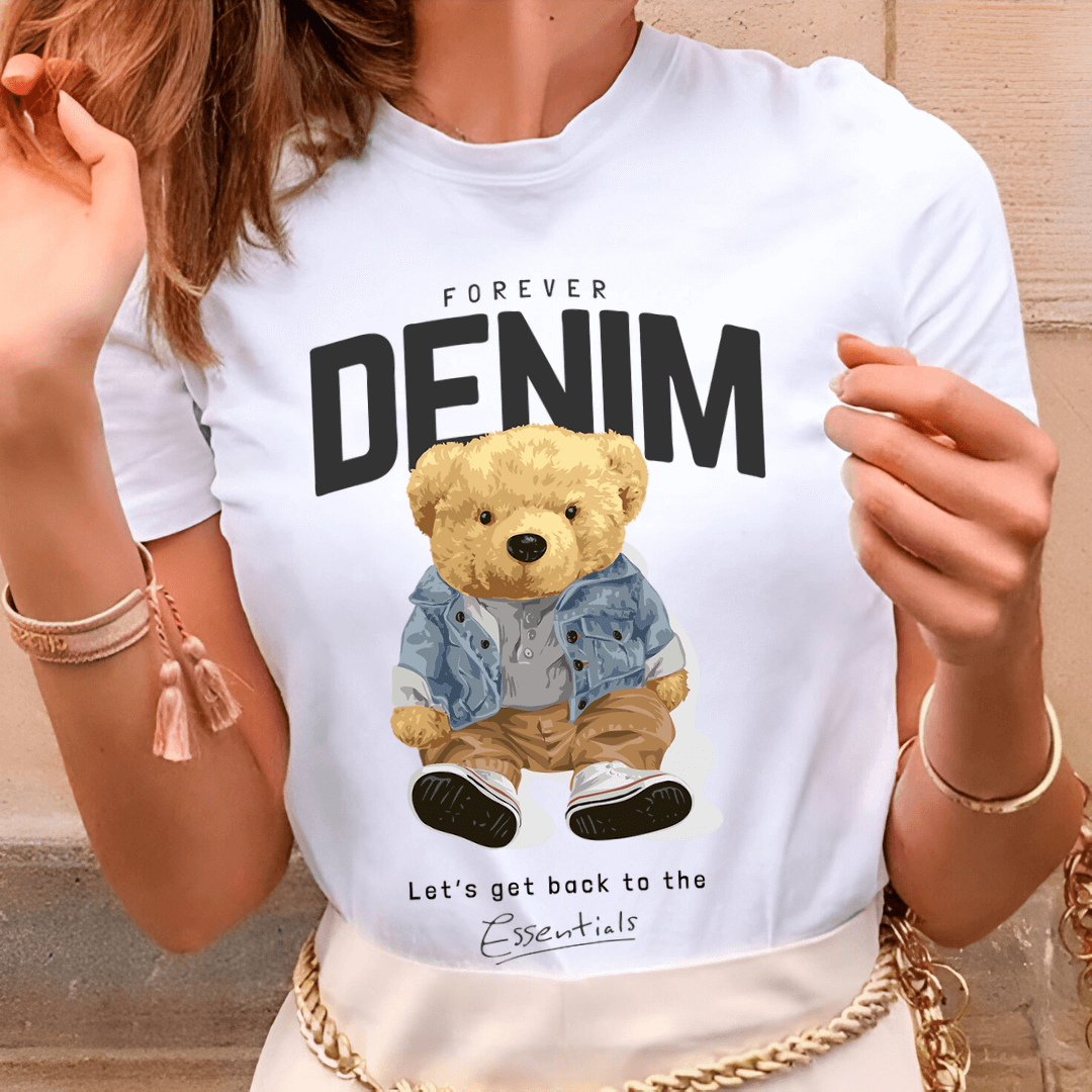 Tricou Casual Damă Engros Alb | Gentleman Bear | Bumbac Organic 100%, 160 g/m²