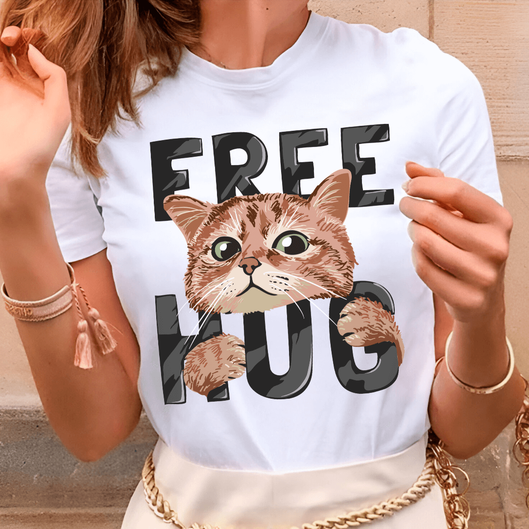 Tricou Casual Damă Engros Alb | Free Hugs | Bumbac Organic 100%, 160 g/m²
