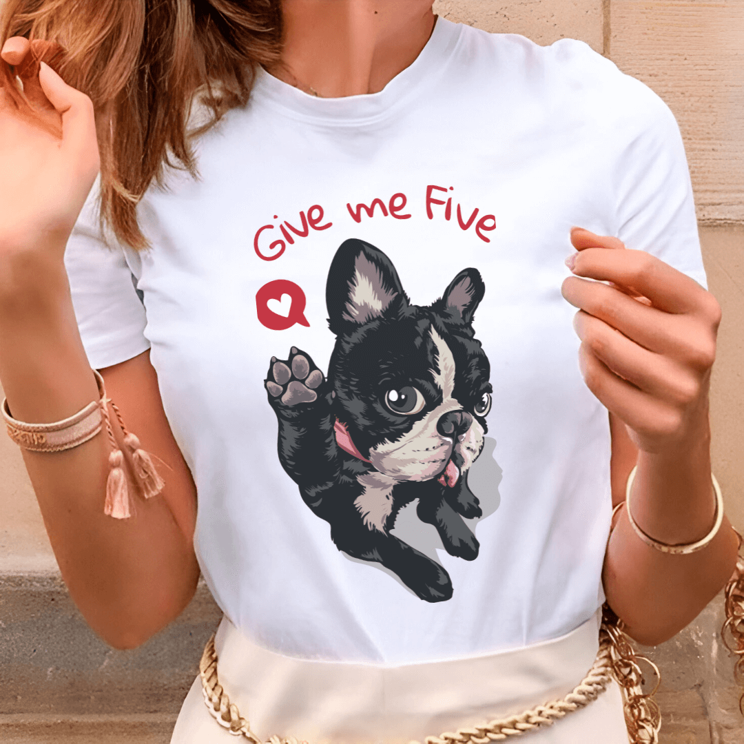 Tricou Casual Damă Engros Alb | Give Me Five | Bumbac Organic 100%, 160 g/m²