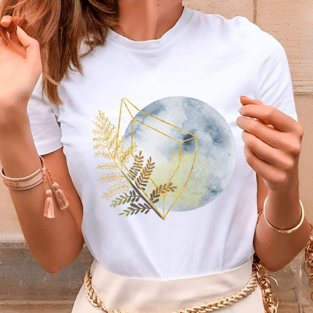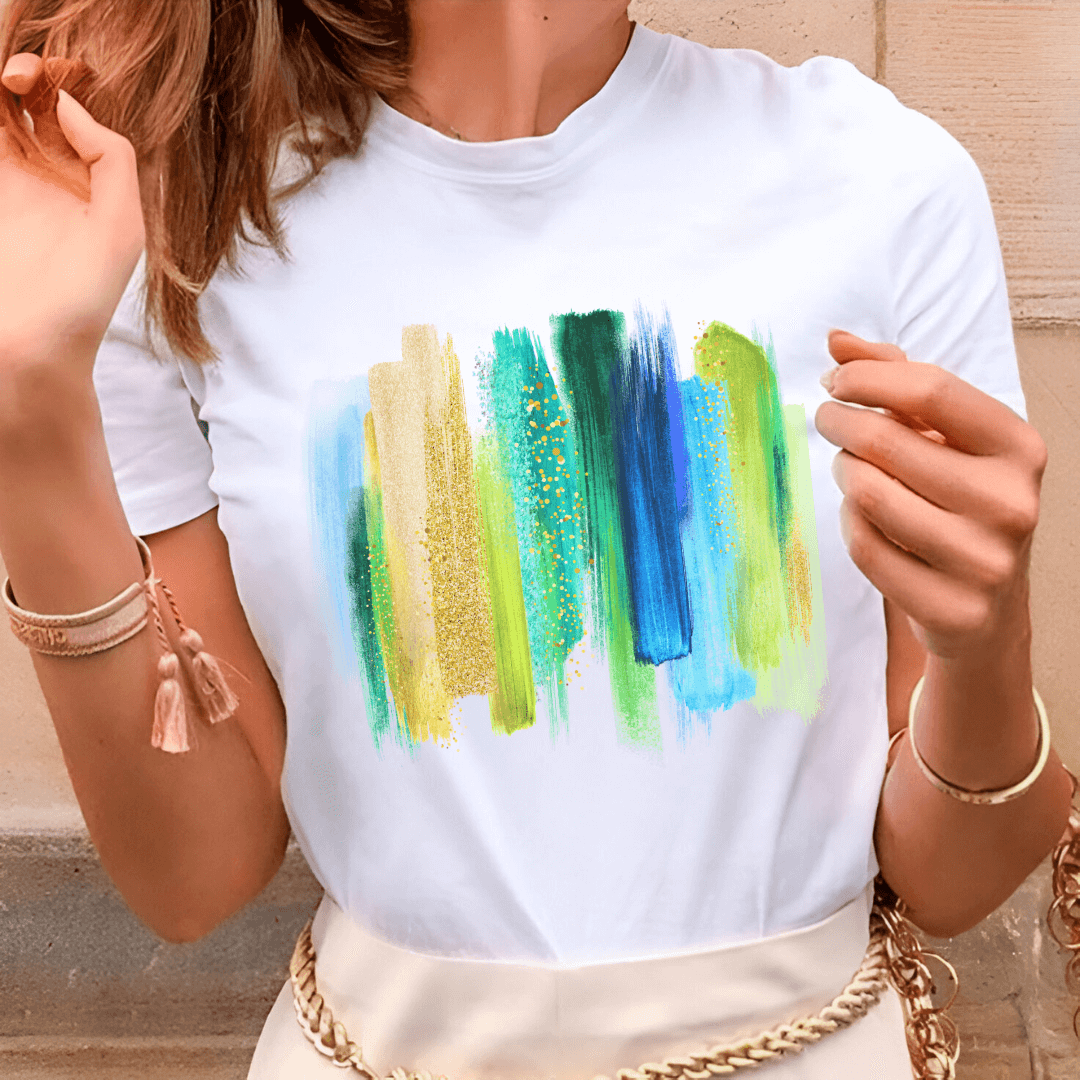Tricou Casual Damă Engros Alb | Green Glitters | Bumbac Organic 100%, 160 g/m²