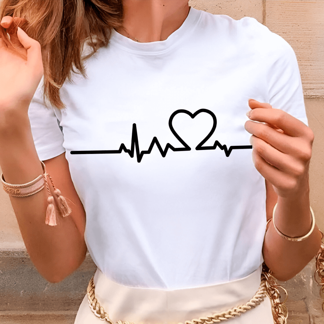 Tricou Casual Damă Engros Alb | Heartbeat | Bumbac Organic 100%, 160 g/m²