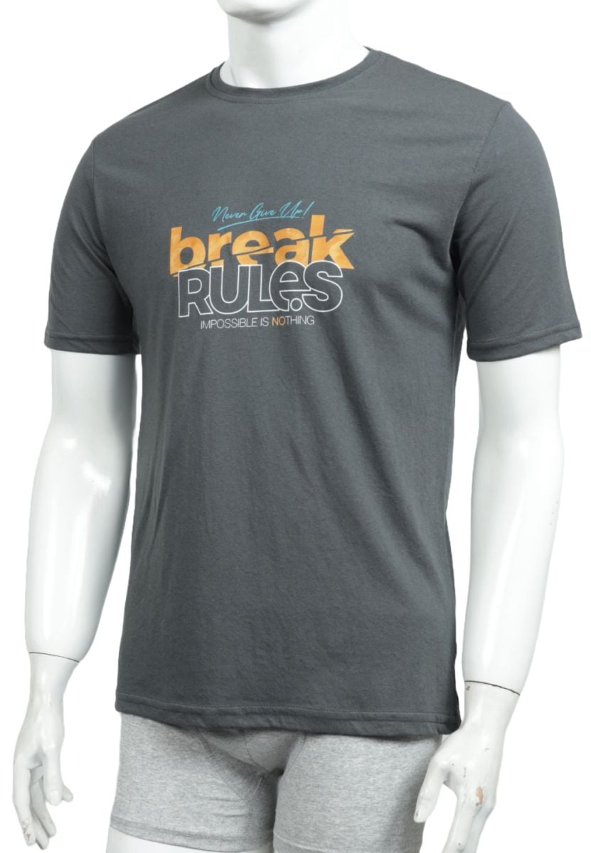 Tricou Bărbați cu Imprimeu BREAK RULES,Culoare Gri Inchis,Engros