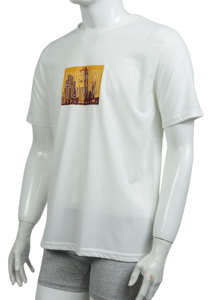 Tricou Bărbați cu Imprimeu DOWNTOWN ,Culoare Alb,Engros