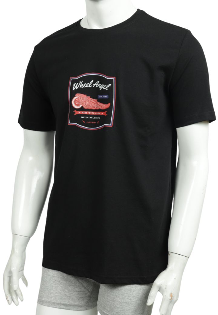 Tricou Bărbați cu Imprimeu WHEEL ANGEL , Culoare Negru,Engros