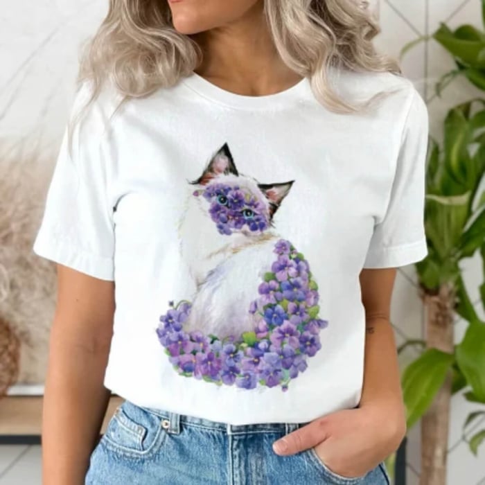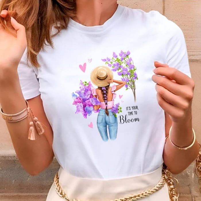 Tricou Dama Alb Purple Lilac Blossom Engros