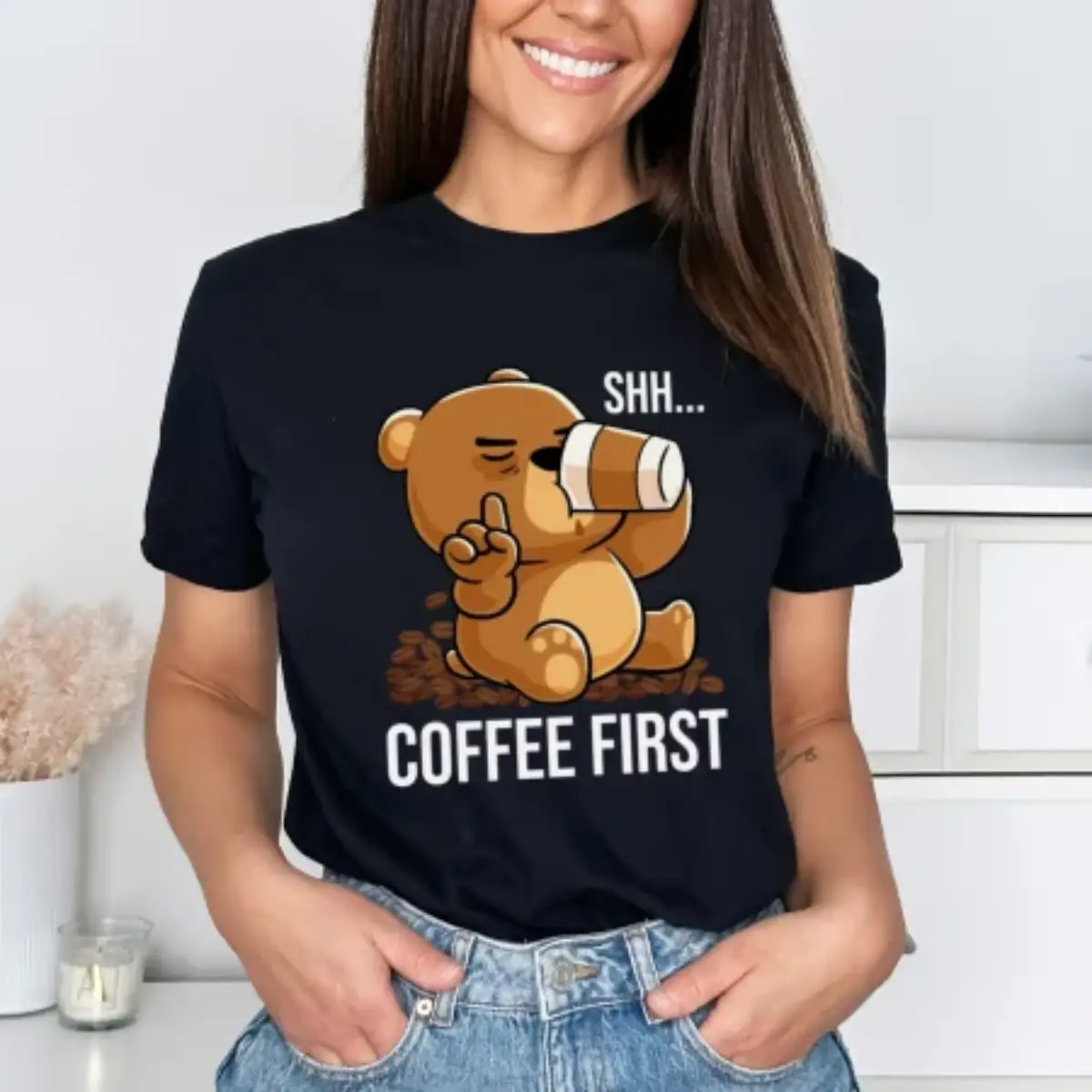 Tricou Dama Negru Lazy Bear Coffee Engros