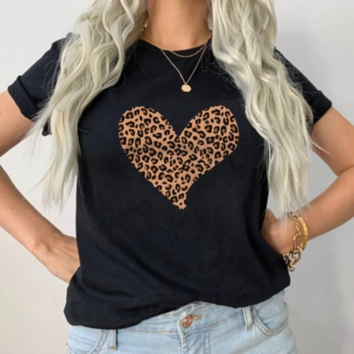 Tricou Dama Negru Trendy Leopard Heart Engros