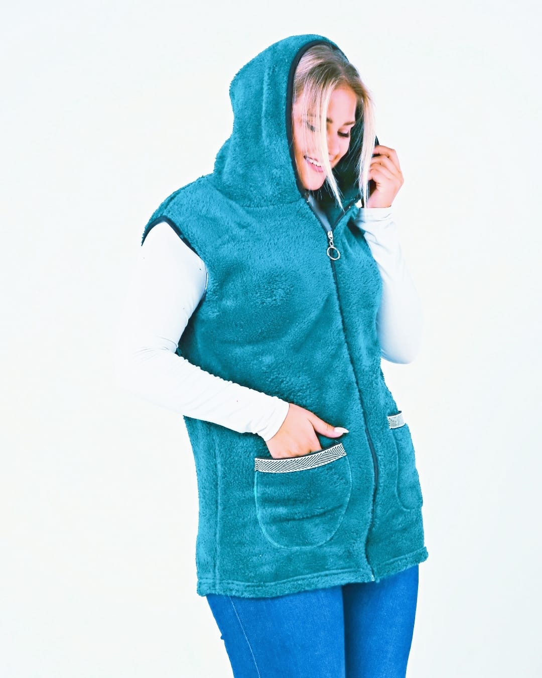 Vesta cocolino batal, cu aplicatie zig-zag la buzunare, en-grooss.