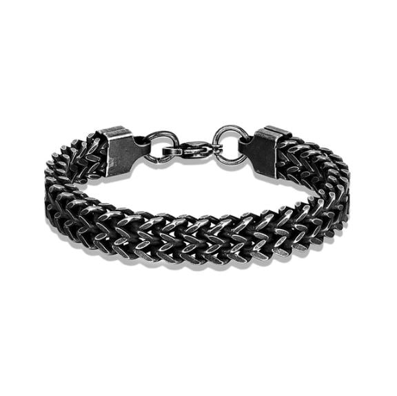Bratara cu Zale duble, Zig-Zag, pentru Barbati, Fashion, Stainless-Steel, Negru Engros