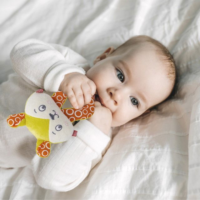 Jucarie din plus zornaitoare Pisicuta, 3 luni+, BabyJem, Galben