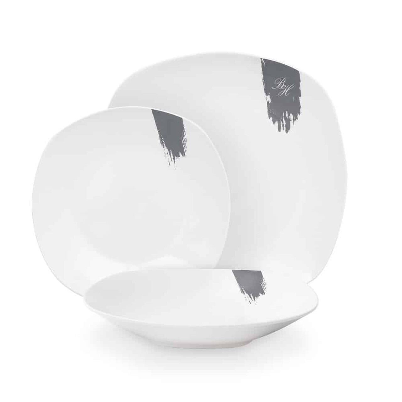 Serviciu de masa 18 piese Berlinger Haus, Aspen, portelan, alb/gri